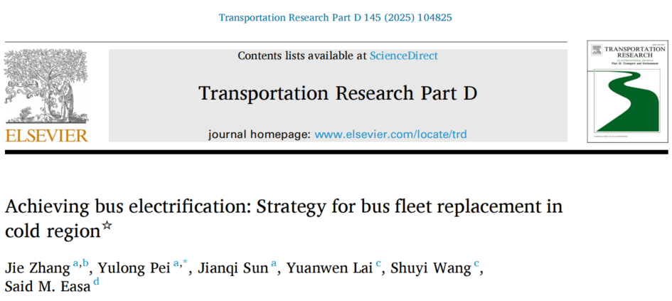 近日,公司张杰老师作为第一作者在交通领域国际顶刊《Transportation Research Part D: Transport and Environment》(中国科公司1区)发表题为“Achieving bus electrification: strategy for bus fleet replacement in cold regions”的研究论文。