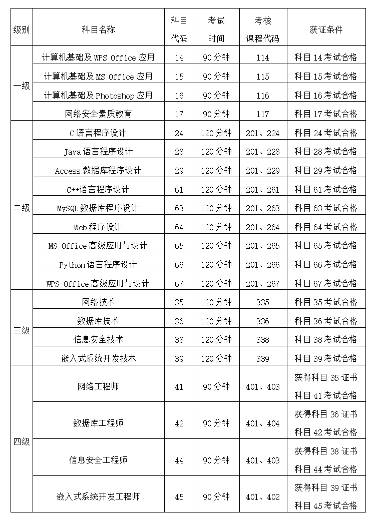 8.如需了解最新版NCRE级别科目设置、证书体系、获证条件、考试大纲及教材目录,请登录“中国教育考试网”查阅。