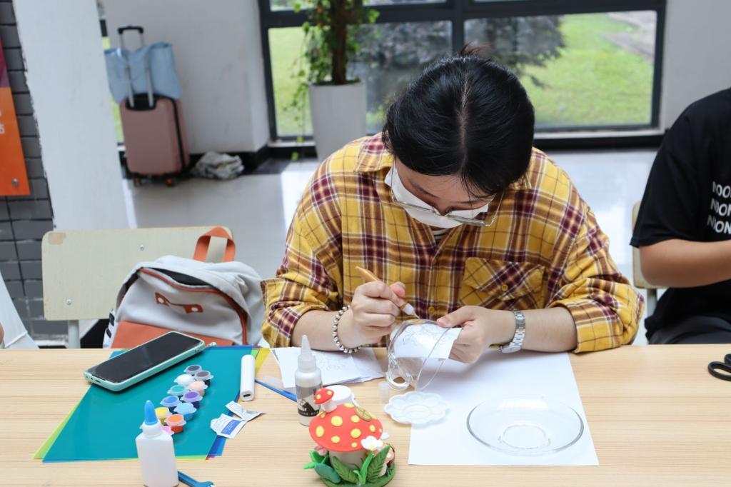 活动现场,同学们运用色彩斑斓的玻璃纸进行创意手工制作,通过剪裁、拼贴、组合等工序,一件件富有创意的手工作品逐渐成型。活动过程中,同学们专注投入,在艺术创作中体验专注与放松的愉悦感受,现场氛围轻松融洽。